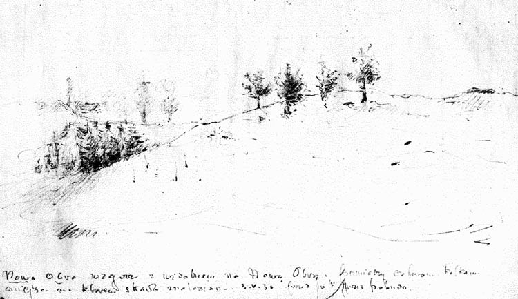 View of the place where the hoard was discovered in 1930 - drew by professor Z. Zakrzewski.