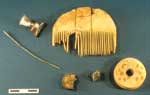 Z innych form zabytków stosunkowo długo używane były sprzączki półkoliste typu