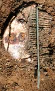 Pobrano je z okolic brązowego dzbana rzymskiego, mogły być one pozostałością