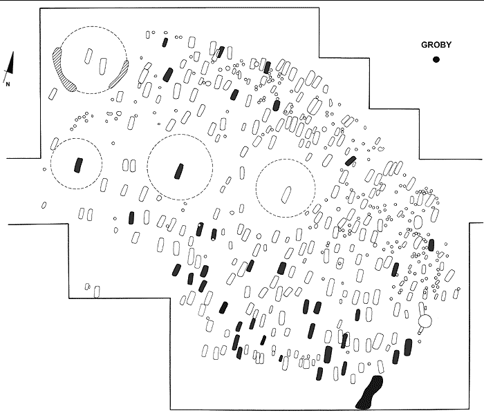Ryc. 54. Kowalewko, stan.12. Rozmieszczenie grobów szkieletowych - wyrabowanych
